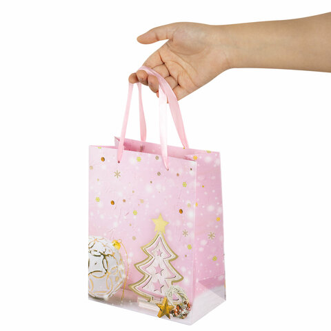 Пакет подарочный (1 штука) новогодний 18x10x23 см, ЗОЛОТАЯ СКАЗКА "Lilac Story", фольга, 608233