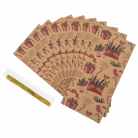 Подарочный новогодний пакет с зажимами (КОМПЛЕКТ 10 штук) "Паттерн № 2" ЗОЛОТАЯ СКАЗКА – отличное решение для упаковки любого презента, которое позволит с легкостью и со вкусом оформить выбранный подарок.