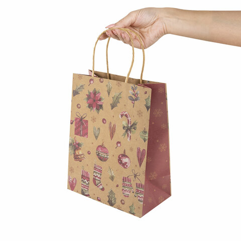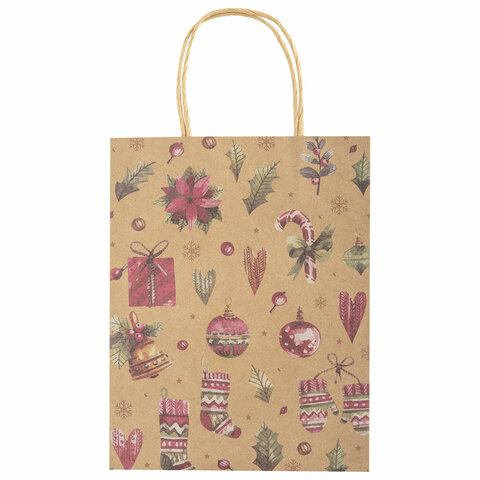 Подарочный новогодний пакет (КОМПЛЕКТ 10 штук) "Новогодние Штучки" ЗОЛОТАЯ СКАЗКА – отличное решение для упаковки любого презента, которое позволит легко и со вкусом оформить выбранный подарок.
