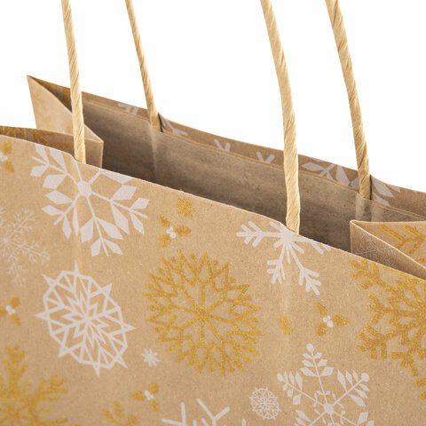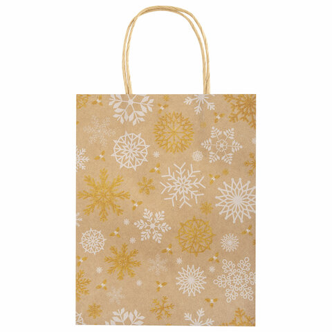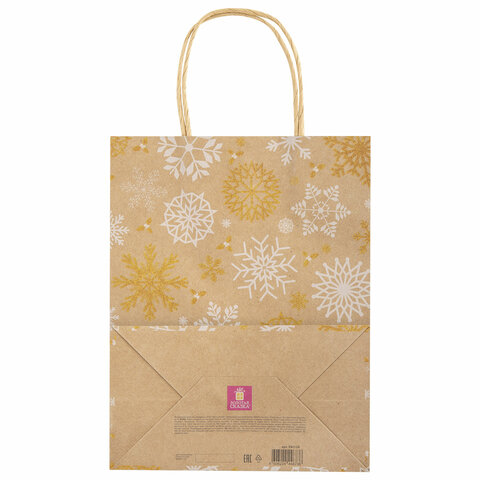 Подарочный новогодний пакет (КОМПЛЕКТ 10 штук) "Снежинки" ЗОЛОТАЯ СКАЗКА – отличное решение для упаковки любого презента, которое позволит легко и со вкусом оформить выбранный подарок.
