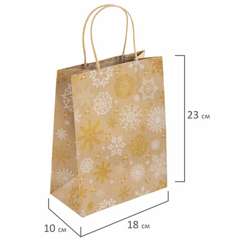 Пакет подарочный КОМПЛЕКТ 10 штук новогодний 18x10x23 см, "Снежинки", ЗОЛОТАЯ СКАЗКА, 592126