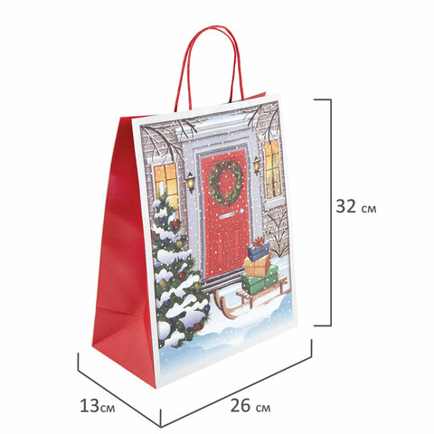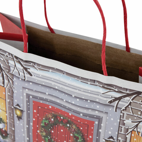 Пакет подарочный КОМПЛЕКТ 10 штук новогодний 26x13x32 см, "Сочельник", ЗОЛОТАЯ СКАЗКА, 592130