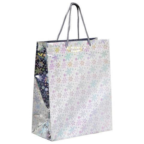 Пакет подарочный новогодний НАБОР 4 шт. 26x13x32 см (L), ГОЛОГРАФИЯ 3 цвета ЗОЛОТАЯ СКАЗКА, 609614