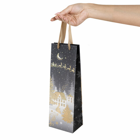 Подарочный новогодний пакет под бутылку "Bottle" ЗОЛОТАЯ СКАЗКА – отличное решение для упаковки любого презента, которое позволит легко и со вкусом оформить выбранный подарок.