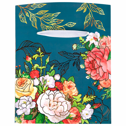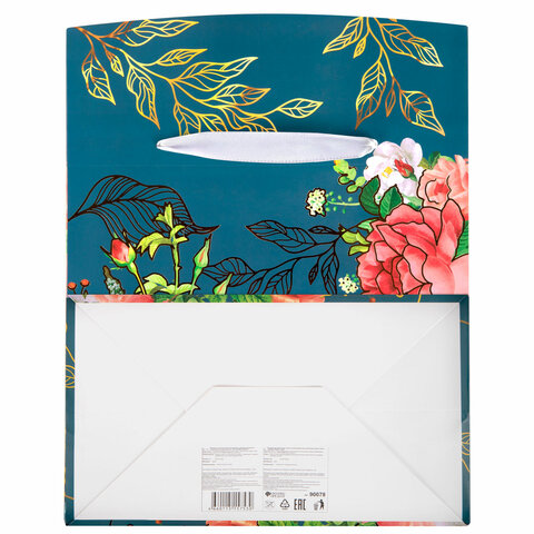 Пакет-коробка подарочный (1 штука) ассорти "Цветы", 22,5х13,5х20 см, тиснение фольгой, ламинация 90077, 90078, 90077