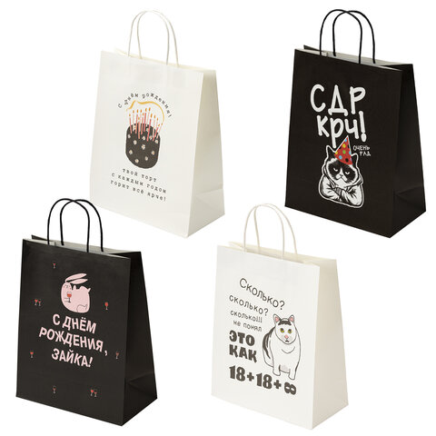 Пакет подарочный (1 штука) 26х13х32 см (L) "Funny Mix", ассорти, крафт, ЗОЛОТАЯ СКАЗКА, 700820