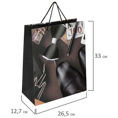 Пакет подарочный (1 штука) 26x13x32 см, ЗОЛОТАЯ СКАЗКА "Businessman", выборочный лак, 608245