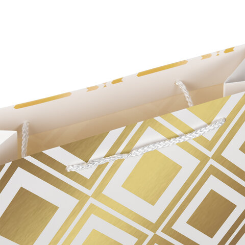 Пакет подарочный (1 штука) 26x13x32 см, ЗОЛОТАЯ СКАЗКА "Gold Luxury", тиснение фольгой, белый, 608249