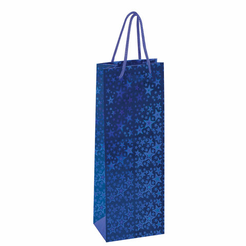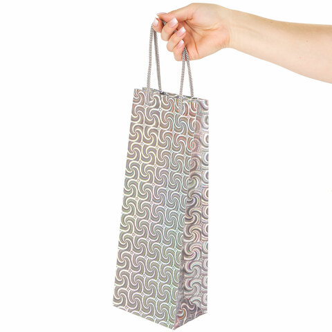 Пакет подарочный (1 штука) под бутылку 13x8,5x36 см, ЗОЛОТАЯ СКАЗКА голография, ассорти 4 цвета, 606608