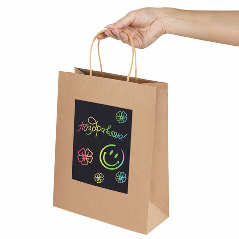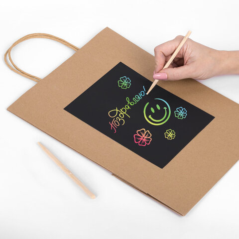 Пакет подарочный КОМПЛЕКТ 7 штук, 26x13x32 см, скретч-слой + стилус, "Brown Kraft", ЗОЛОТАЯ СКАЗКА, 591968