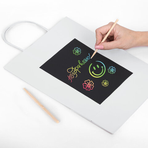 Пакет подарочный КОМПЛЕКТ 7 штук, 26x13x32 см, скретч-слой + стилус, "White Kraft", ЗОЛОТАЯ СКАЗКА, 591969