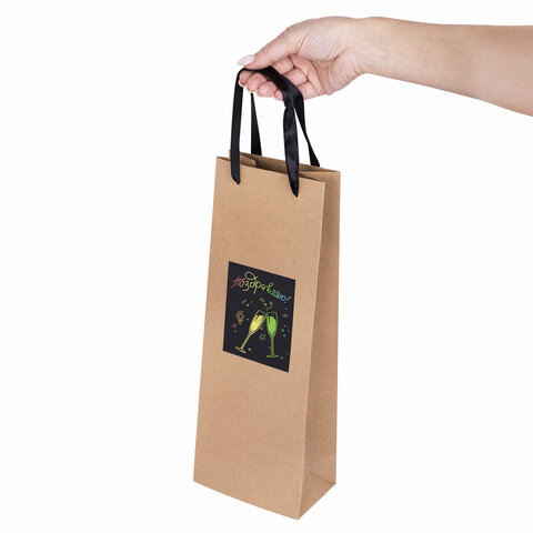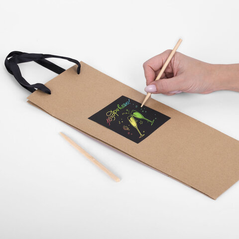 Пакет подарочный под бутылку КОМПЛЕКТ 7 шт., 13х8х36 см, скретч-слой + стилус, крафт, ЗОЛОТАЯ СКАЗКА, 591973