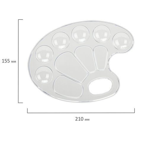 Палитра для рисования BRAUBERG KIDS, прозрачная, овальная, 10 ячеек (6 ячеек для красок и 4 для смешивания), европодвес, 192354