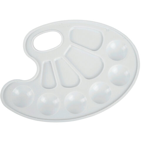 Палитра предназначена для смешивания красок. Удобна и проста в использовании. Позволяет получать новые оттенки путем смешивания цветов. По краю палитры есть 6 ячеек для размещения красок, а в центре палитры 4 отделения для смешивания.