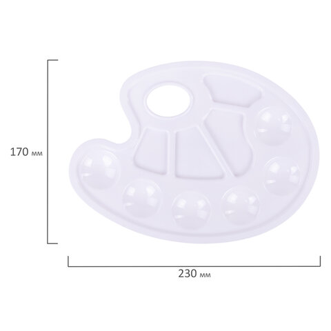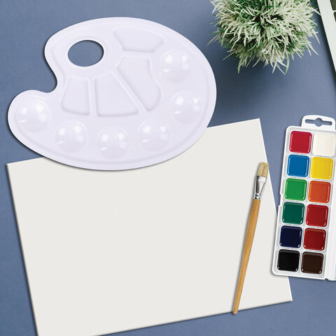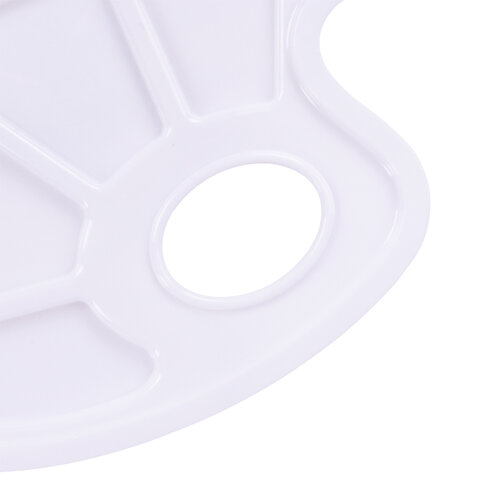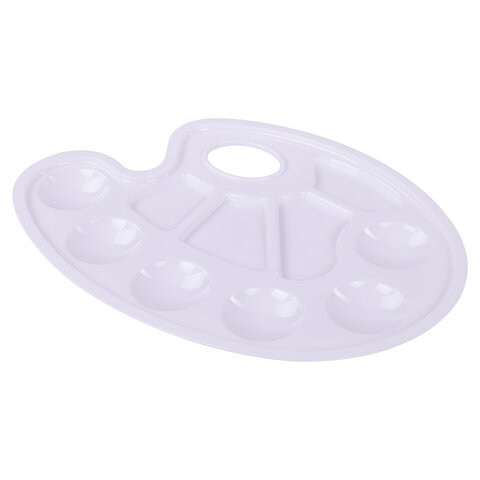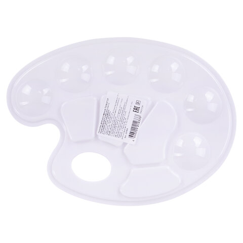 Палитра для рисования ПИФАГОР белая, овальная, 6 ячеек для красок и 4 ячейки для смешивания, 227805