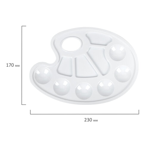 Палитра для рисования ЮНЛАНДИЯ белая, овальная, 6 ячеек для красок и 4 для смешивания, европодвес, 227806