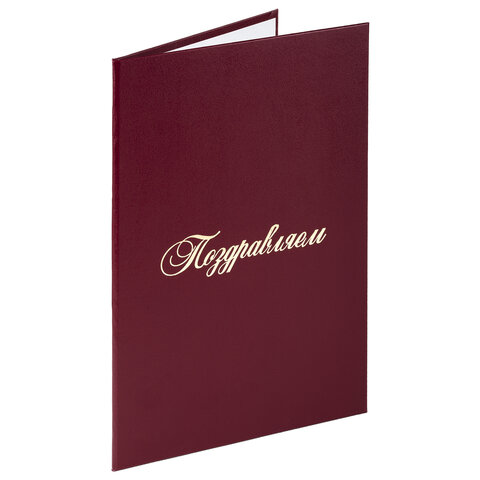 Папка адресная бумвинил "ПОЗДРАВЛЯЕМ!", А4, бордовая, индивидуальная упаковка, STAFF "Basic", 129578
