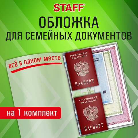 Папка-органайзер, обложка семейная для 1-го комплекта документов, А4, ПВХ, матовая, STAFF, 238337