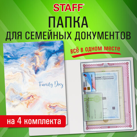 Папка-органайзер семейная для 4-х комплектов документов "Marble 2", А4, цветной принт, STAFF, 238341