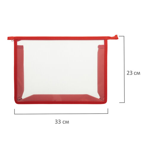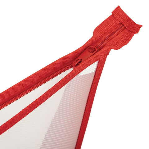 Папка для тетрадей А4 ПИФАГОР, пластик, молния сверху, прозрачная, красный, 272108