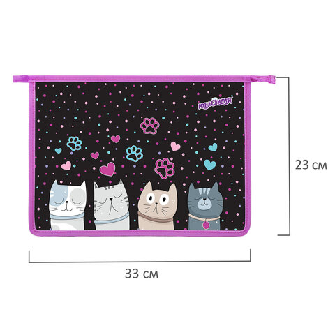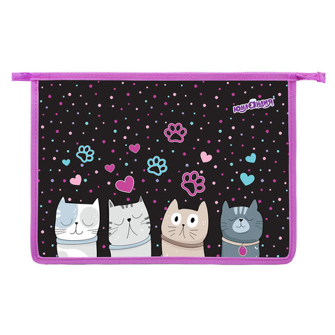 Папка для тетрадей ЮНЛАНДИЯ А4, 1 отделение, пластик, на молнии, "Cat squad", 273347