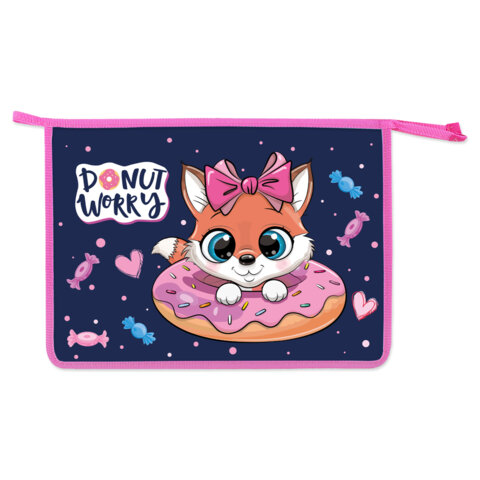 Папка для тетрадей ЮНЛАНДИЯ А4, 1 отделение, пластик, на молнии, "Donut worry", 272136