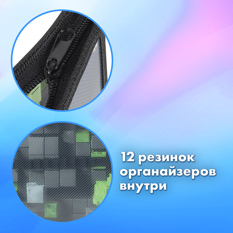 Папка для труда BRAUBERG А4, 2 отделения, пластик, молния сверху, органайзер, "Module blocks", 273400