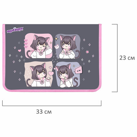 Папка для труда на молнии ЮНЛАНДИЯ А4, 1 отделение, откидная планка, органайзер, "Anime dreamer", 273393