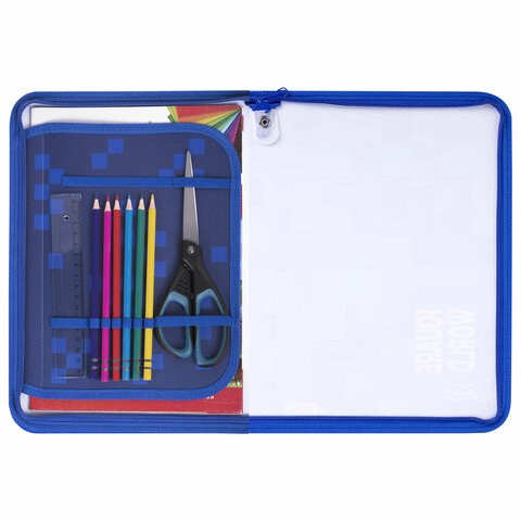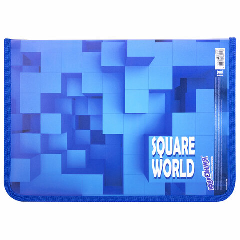 Папка для труда на молнии ЮНЛАНДИЯ А4, 1 отделение, откидная планка, органайзер, "Square world", 270987