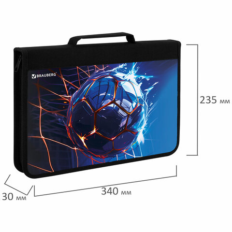 Папка на молнии BRAUBERG А4 с ручкой, с органайзером, 1 отделение, "Score goal", 273385
