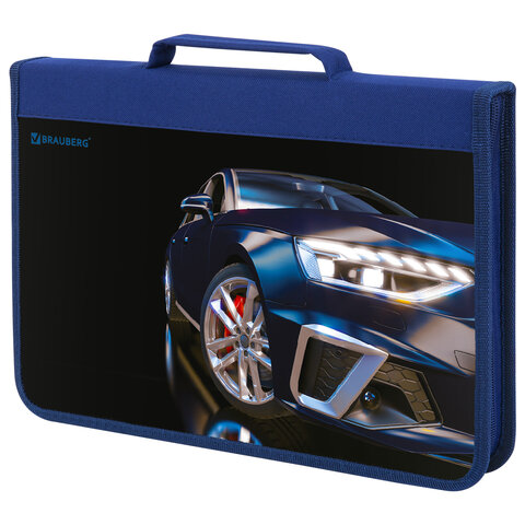 Папка на молнии BRAUBERG А4 с ручкой, с органайзером, 1 отделение, "Super car", 272219