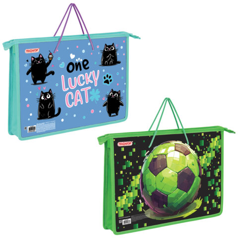 Папка на молнии с ручками ПИФАГОР А4, 1 отделение, пластик, ручки-шнурок, АССОРТИ, 274473