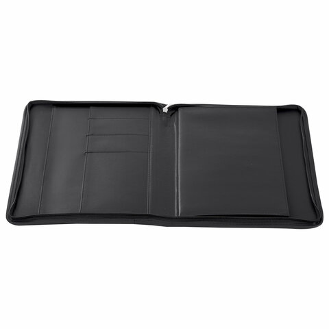 Конструкция папки позволяет ей широко распахиваться, открывая удобный доступ к различным внутренним отделениям.