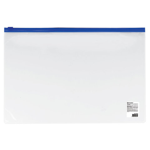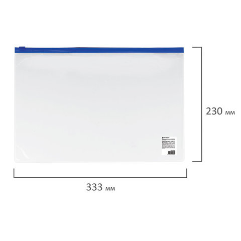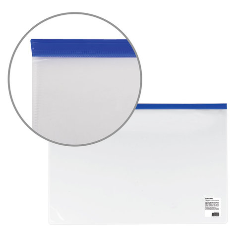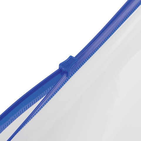 Папка-конверт на молнии А4 (230х333 мм), прозрачная, молния синяя, 0,11 мм, BRAUBERG, 221010