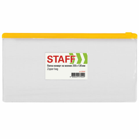 Папка-конверт на молнии МАЛОГО ФОРМАТА (255х130 мм), карман для визиток, прозрачная, 0,12 мм, STAFF, 229549
