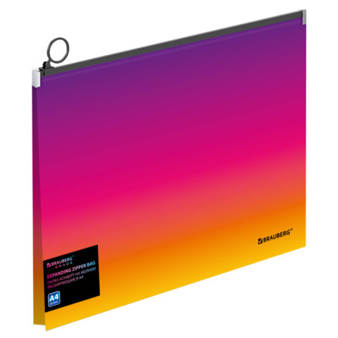 Папка-конверт расширяющаяся на молнии BRAUBERG "Grade", А4, до 300 листов, желто-розовый градиент 0,18 мм, 271968