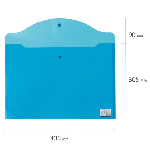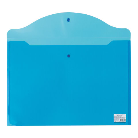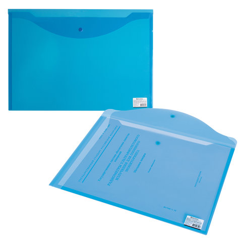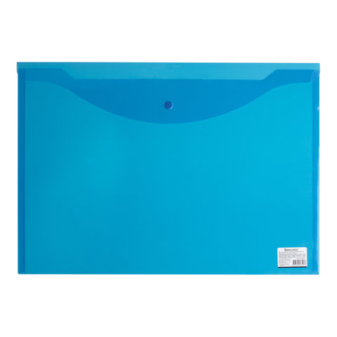 Папка-конверт с кнопкой БОЛЬШОГО ФОРМАТА (305х435 мм), А3, прозрачная, синяя, 0,18 мм, BRAUBERG, 224034