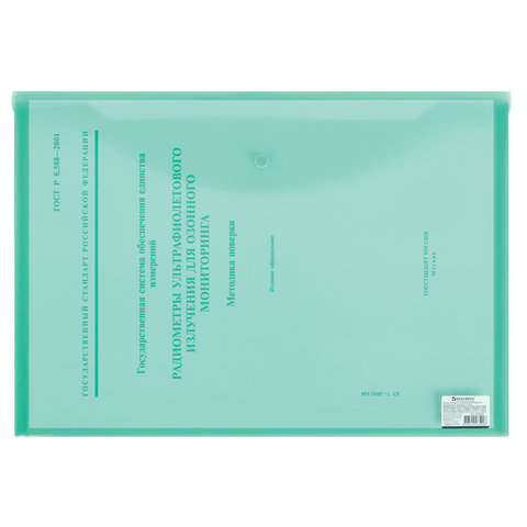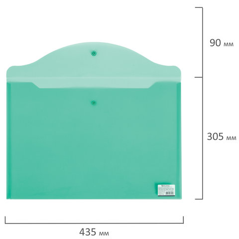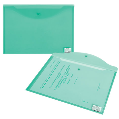Папка-конверт с кнопкой БОЛЬШОГО ФОРМАТА (305х435 мм), А3, прозрачная, зеленая, 0,18 мм, BRAUBERG, 224033