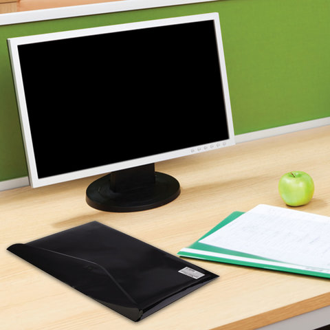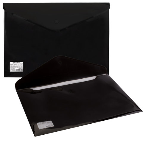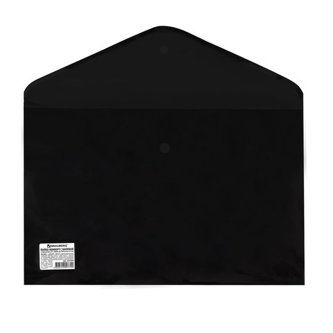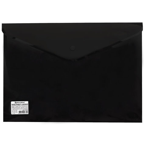 Папка-конверт с кнопкой BRAUBERG, А4, до 100 листов, непрозрачная, черная, СВЕРХПРОЧНАЯ 0,2 мм, 221361