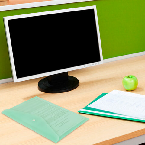 Папка-конверт с кнопкой BRAUBERG "Pastel", А4, матовая непрозрачная, мятная, ПРОЧНАЯ 0,2 мм, 272883