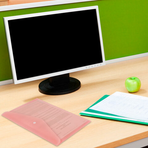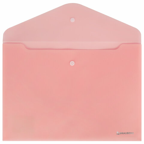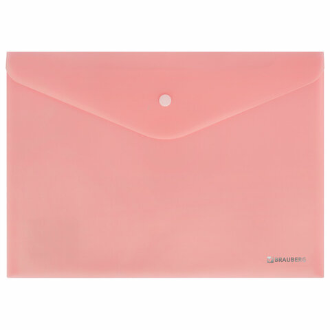 Папка-конверт с кнопкой BRAUBERG "Pastel", А4, матовая непрозрачная, персиковая, ПРОЧНАЯ 0,2 мм, 272882