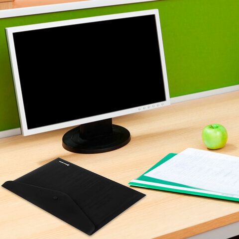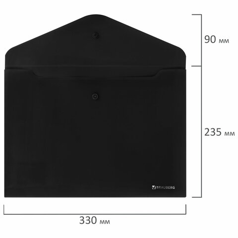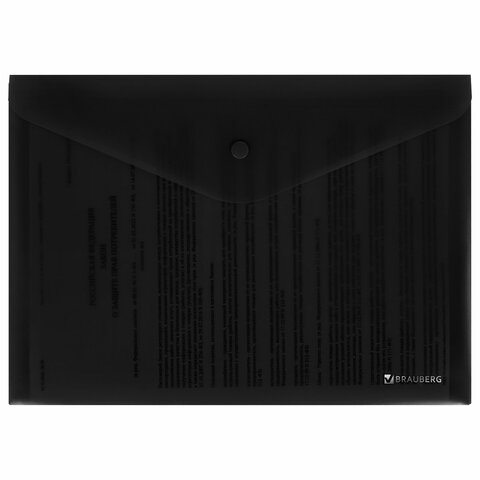 Папка-конверт с кнопкой BRAUBERG "SUPER", А4, матовая непрозрачная, черная, ПРОЧНАЯ 0,2 мм, 272879