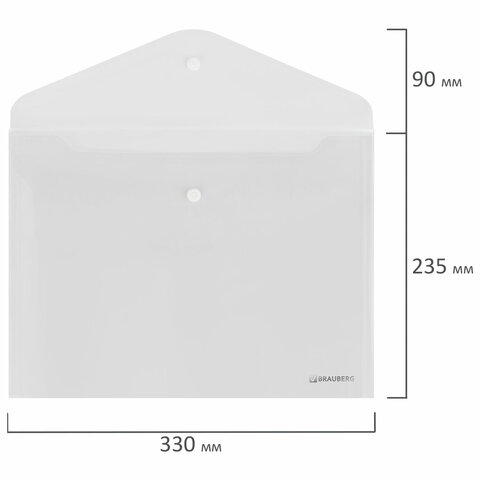 Папка-конверт с кнопкой BRAUBERG "SUPER", А4, прозрачная, ПРОЧНАЯ 0,2 мм, 272876