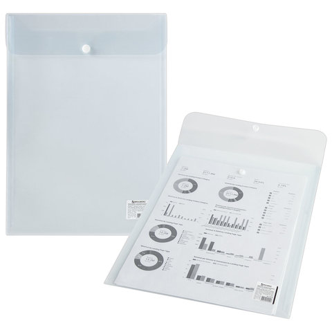 Папка-конверт с кнопкой BRAUBERG, вертикальная, А4, до 100 листов, прозрачная, 0,15 мм, 224978
