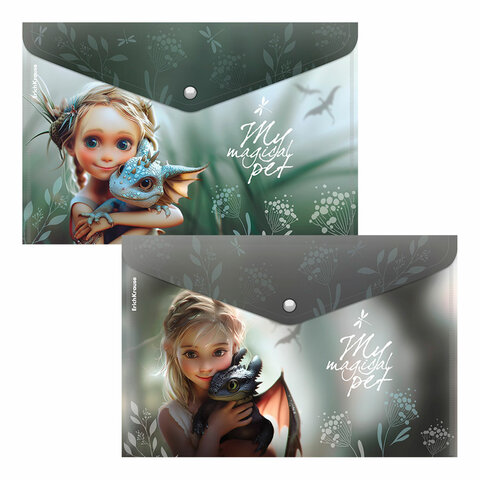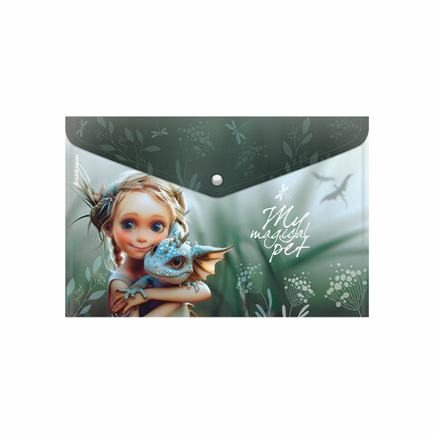 Папка-конверт на кнопке ERICH KRAUSE "Magic Pet" формата А4 из высококачественного пластика с текстурой поверхности "зеркало".