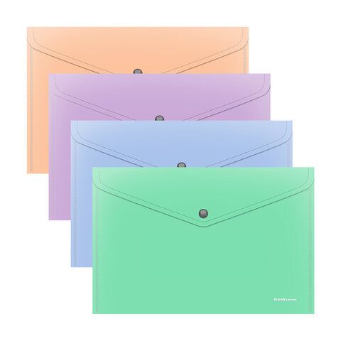 Папка-конверт с кнопкой ERICH KRAUSE "Matt Pastel Bloom", А4, до 120 л, непрозрачная, ассорти, 0,18 мм, 61141