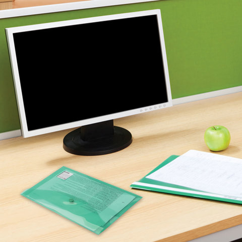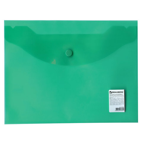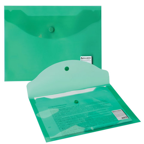 Папка-конверт с кнопкой МАЛОГО ФОРМАТА (240х190 мм), А5, прозрачная, зеленая, 0,18 мм, BRAUBERG, 224025