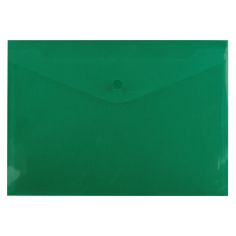 Папка-конверт с кнопкой прозрачная А4 BRAUBERG UNIVERSAL, до 100 листов, зеленая, 0,15 мм, 273074