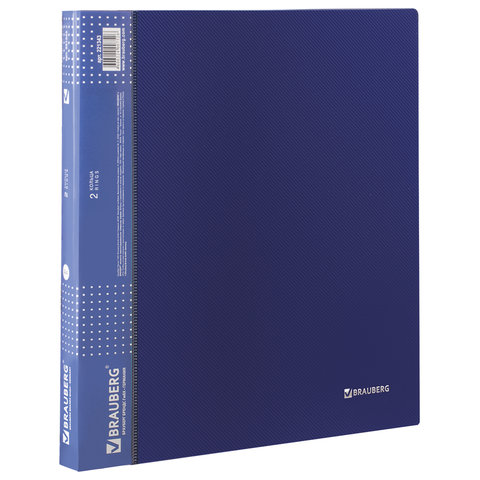Папка на 2 кольцах BRAUBERG "Диагональ", 25 мм, темно-синяя, до 170 листов, 0,8 мм, 221343