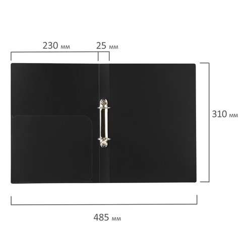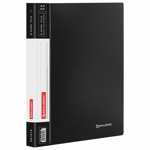 Папка на 2 кольцах BRAUBERG "Стандарт", 25 мм, черная, до 170 листов, 0,8 мм, 221616